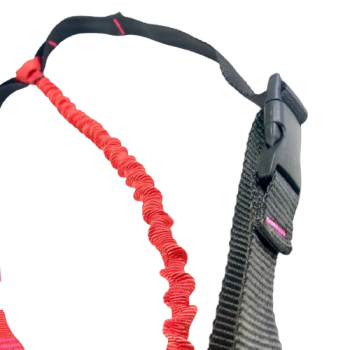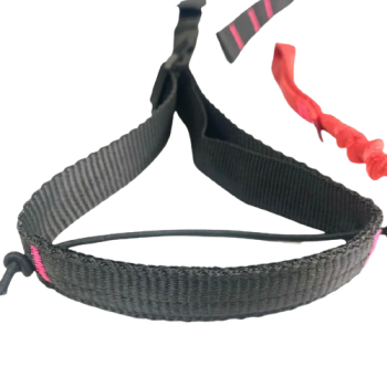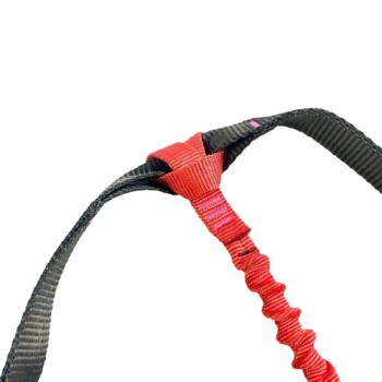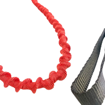 A segunda é uma fita com elástico interno que liga o ascensor à fita daisy chain que vai fixada ao cinto.