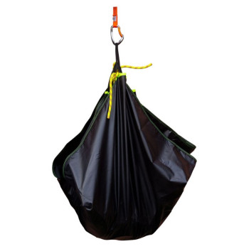 Para transportar a corda* entre bases de vias próximas, apenas clipe uma costura expressa* às 4 alças existentes nas pontas da lona e você terá um saco de transporte.