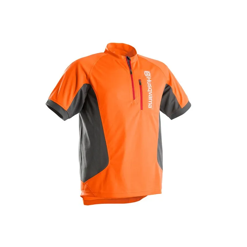 A Camisa de Manga Curta Husqvarna é ideal para atividades pesadas em clima quente. Confeccionada em poliéster reciclado e design exclusivo com painéis em laranja de alta visibilidade e logotipo refletivo, ajuda a mantê-lo confortável e visível enquanto trabalha. A Camiseta de Manga Curta Husqvarna possui secagem rápida e zíper frontal, costas estendidas e bolso frontal com zíper de fácil acesso, com tecnologia que ajuda a diminuir a umidade do corpo, mantendo-o seco e fresco enquanto trabalha.
