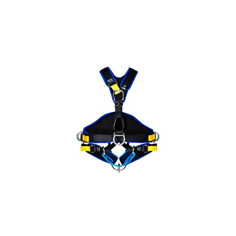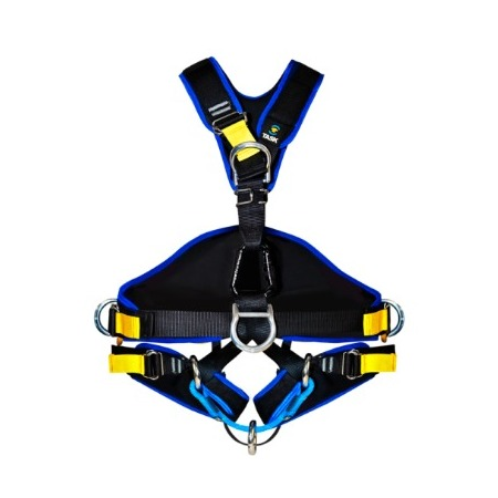 Possui exclusivo sistema AC®, patenteado, fivela de barra cilíndrica dupla, com coroa em ângulo em inox, em ambos lados. Especialmente desenvolvido para operações verticais em árvores, bem como, resgate técnico, acesso por cordas, evacuação, posicionamento, trabalhos em altura e espaços confinados, possui baixo centro de gravidade, ideal para essas atividades. Com 4 portas materiais em amarelo, estruturados, 1 porta mochila central, mosquetão com sistema Keylock e Sistema FIT FIX® para fácil conexão do bloqueador ventral, possui 8 fivelas de regulagem.