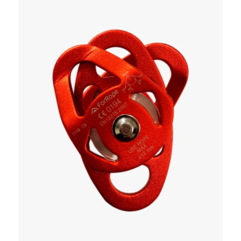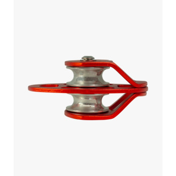 Esta polia dupla oscilante é utilizada para locais confinados, sistemas de içamento de carga, sistemas de diminuição de carga, entre outras atividades. Pesando apenas 197g esta polia tem a carga de resistência de 28KN (7KN + 7KN + 7KN + 7KN) ou seja em média 2.800 kilos.