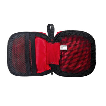 Na cor vermelha, para primeiros socorros, compacta e leve (não acompanha itens de primeiros socorros).