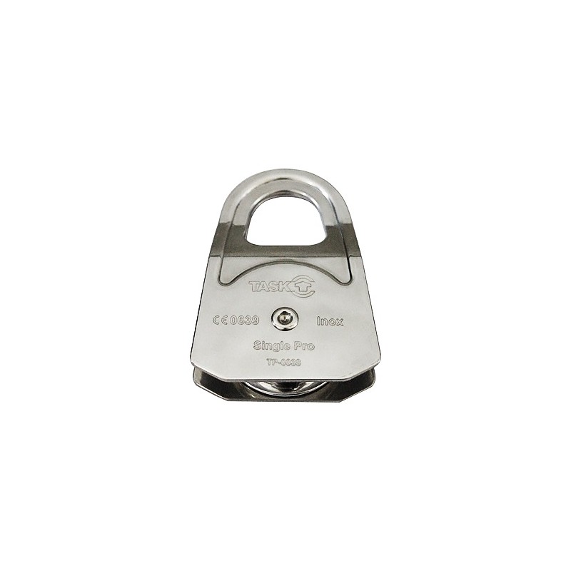 Polia simples, fabricada em aço inox com rolamentos SPID e placas móveis, para cordas de até 13mm de diâmetro. Ideal para sistemas de movimentação e resgates técnicos e em locais confinados.